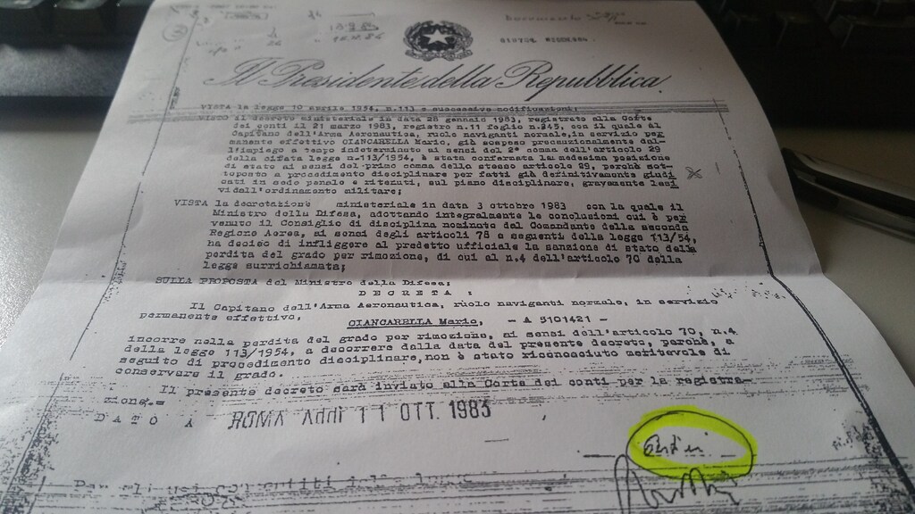 1983 decreto falso con false firme di Pertini e Spadolini di radiazione